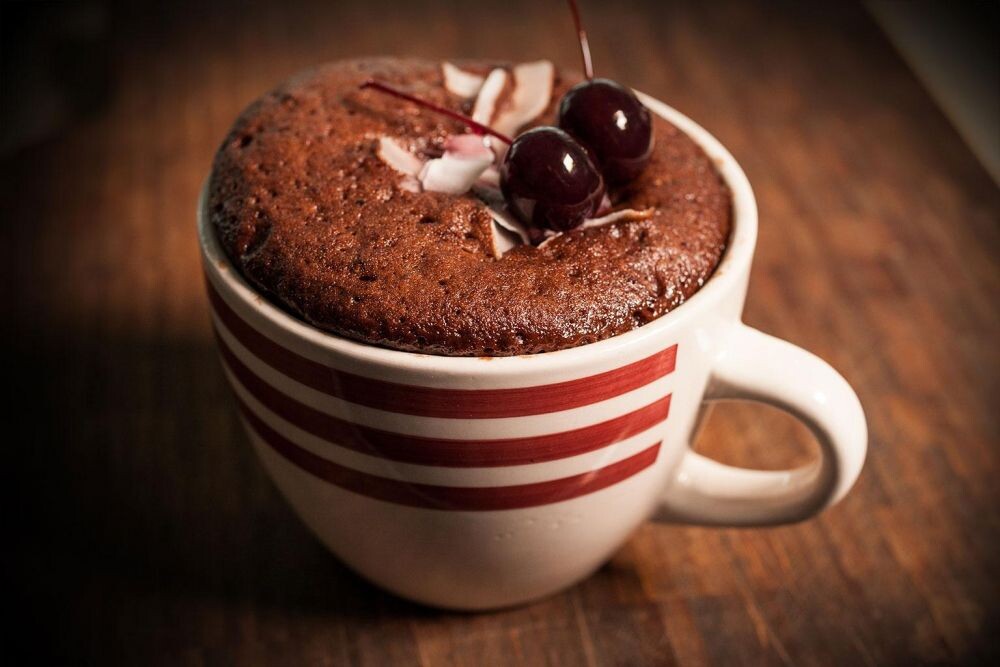 - 1 ст. л. шоколадных капель или маленький кусочек шоколада 1. В кружке (~300–350 мл) смешай муку, сахар, какао, разрыхлитель и щепотку соли. 2. Влей молоко и масло, размешай вилкой до однородности. Вмешай шоколадные капли — они классно тают внутри. 3. Поставь в микроволновку на 60–90 секунд (800–1000 Вт). Начинай проверять с 60‑й секунды: сверху дол