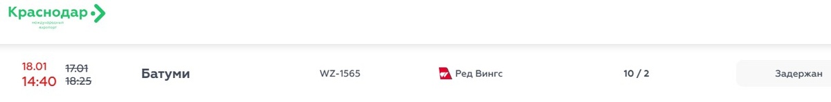 ». Рейс WZ-1565 должен был отправиться в Грузию еще вчера в 18:25. Сейчас на онлайн-табло значится новое время - сегодня, в 14:40. «В связи с ограничением воздушного пространства в Краснодаре авиакомпания вынужденно скорректировала расписание вылета рейса WZ-1565. На время ожидания пассажирам, которые обратились к нашим представителям, мы предоставили воду и питание, а также номера в гостинице. Безопасность – абсолютный приоритет Red Wings» - пояснил нам представитель перевозчика. @tourdom