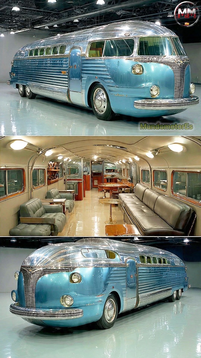 Представьте: вы садитесь в транспортное средство, словно сошедшее со страниц научно-фантастического романа 50-х годов. Гладкие линии, блестящий хром, небесно-голубой цвет — этот автобус выглядит как космический корабль, готовый перенести вас в эпоху джаза, стиляг и смелых мечтаний о будущем! 🛸