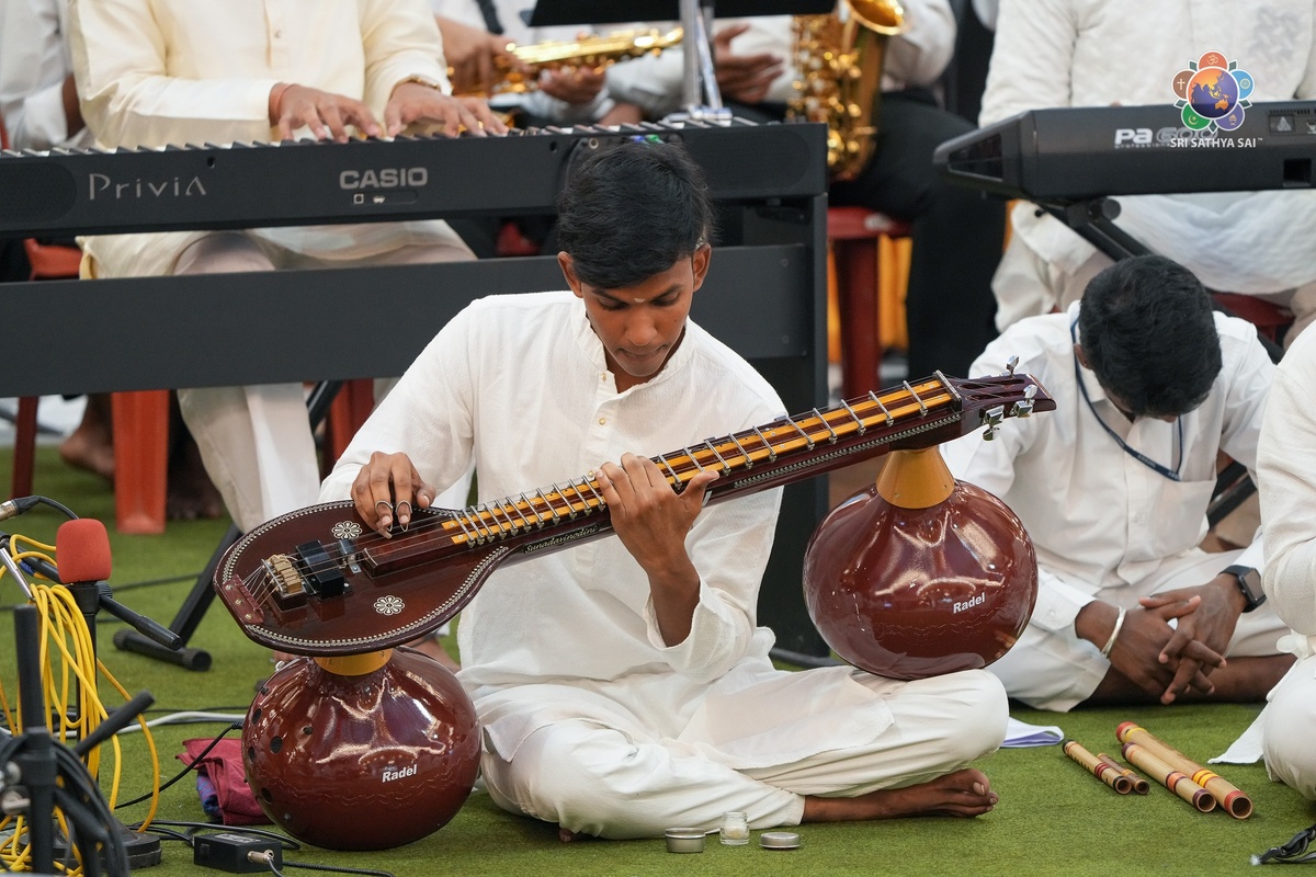 В священный канун Макара Санкранти зал Саи Кульвант Холл наполнился преданностью, дисциплиной и божественной любовью. 123 студента-музыканта из трех мужских кампусов Института высшего образования Шри Сатья Саи (Прашанти Нилаям, Бриндаван и Нандигири) исполнили проникновенную музыкальную симфонию под названием «Премамрита».