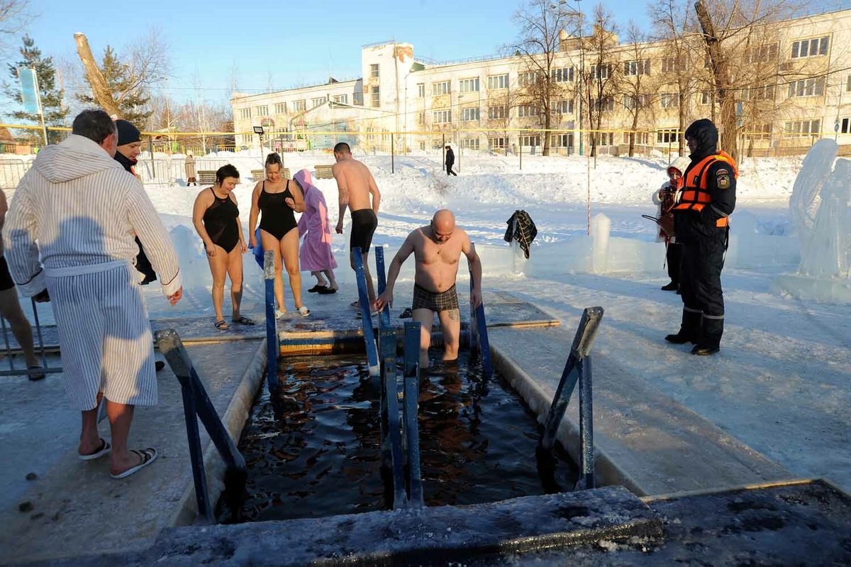 С 18 на 19 января возле них будут дежурить спасатели, полицейские и медработники, сообщает пресс-служба Госкомитета РБ по ЧС. ГК РБ по ЧС напоминает правила купания в проруби на Крещение: — окунаться — купаться следует только в специально оборудованных прорубях у берега под присмотром спасателей; — перед купанием в проруби необходимо разогреть тело, сделав разминку, пробежку; — проследите за тем, чтобы лестница для спуска в воду была устойчивой; — окунаться лучше всего по шею, не замочив голову, чтобы избежать рефлекторного сужения сосудов головного мозга; — никогда не ныряйте в прорубь головой; — не стоит находиться в проруби более одной минуты во избежание общего переохлаждения организма; — если с вами ребенок, не оставляйте его без присмотра, не допускайте его купания без участия взрослых. Противопоказано погружение в ледяную воду людям с хроническими тяжелыми заболеваниями любого характера. Фото: Ринат РАЗАПОВ