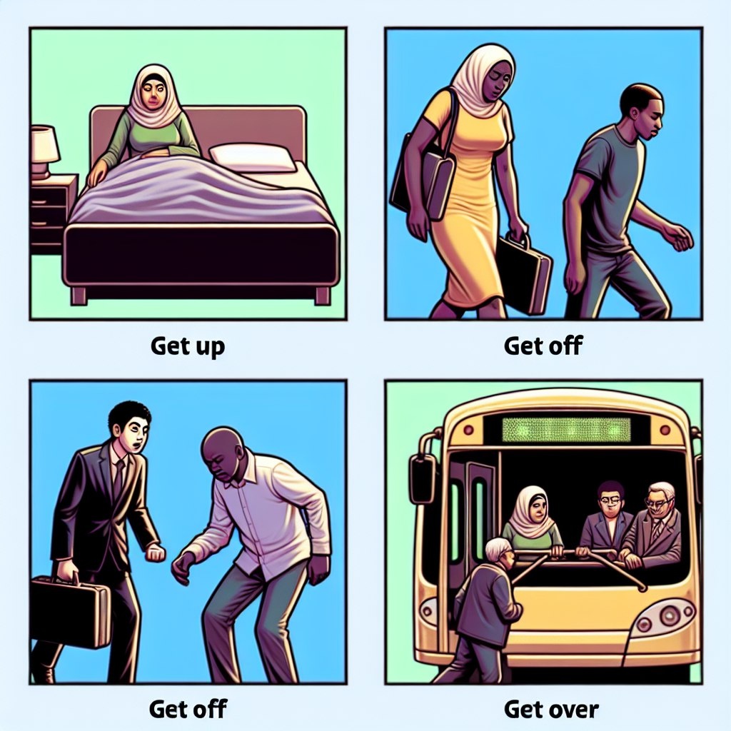 "** Привет, друзья! 🙂 Сегодня поговорим о популярных фразовых глаголах с "GET". Эти глаголы очень часто встречаются в разговорной речи, поэтому знание их поможет вам лучше понимать и говорить по-английски. 🌟 1. "Get up" - вставать, подниматься Обозначает момент, когда вы поднимаетесь из кровати или просто встаете. 2. "Get off" - выходить, слезать Используется, когда вы выходите из транспорта или слезаете с какого-то объекта. 3. "Get on" - садиться, забраться Когда вы садитесь на транспорт (автобус, поезд) или залезаете на что-то. 4. "Get over" - пережить, преодолеть Этот глагол означает, что вы справились с какой-то трудностью или эмоцией. Пример: "I need to get up early tomorrow." - "Мне нужно встать рано завтра." 🌅