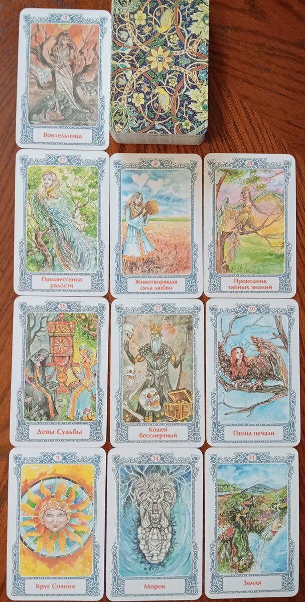 Как видят Вас и Вашу жизнь, Ваши Предки? Карты показывают: на Вас пытались навести Морок. Это дух, напускающий на людей обман и недуги. То, есть ввести Вас в изменённое состояние, заставить Вас подчиниться, чтобы Вы не принадлежали сами себе, это очень опасно. Морок делается через магическое воздействие. Морок делается, чтобы человек потерял волю, возможно, для того, чтобы Вас вовлечь в разного рода негативные дела. Хотели ввести Вас в заблуждение и обмануть - это может быть связано с деньгами или любовью. Везде работает злоба и зависть. Карта "Круг Солнца" показывает: неприятности обойдут Вас стороной. Хорошие перемены будут в Вашей жизни. Они коснутся многих сфер жизни, в частности, личных отношений, которые постепенно наладятся, устранится конфликтность, то есть неприятные ситуации сами собой разрешатся. Также изменения произойдут и в деловой сфере и в здоровье в положительную сторону. В Вашей жизни происходят серьёзные изменения, особенно это касается материальных вопросов, и многи