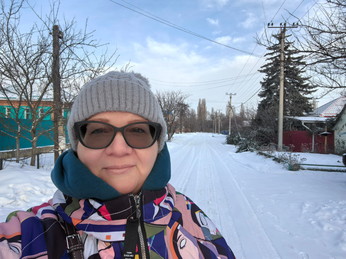 А погода просто замечательная 😊. На улице небольшой мороз, примерно минус шесть, и светит солнце.
