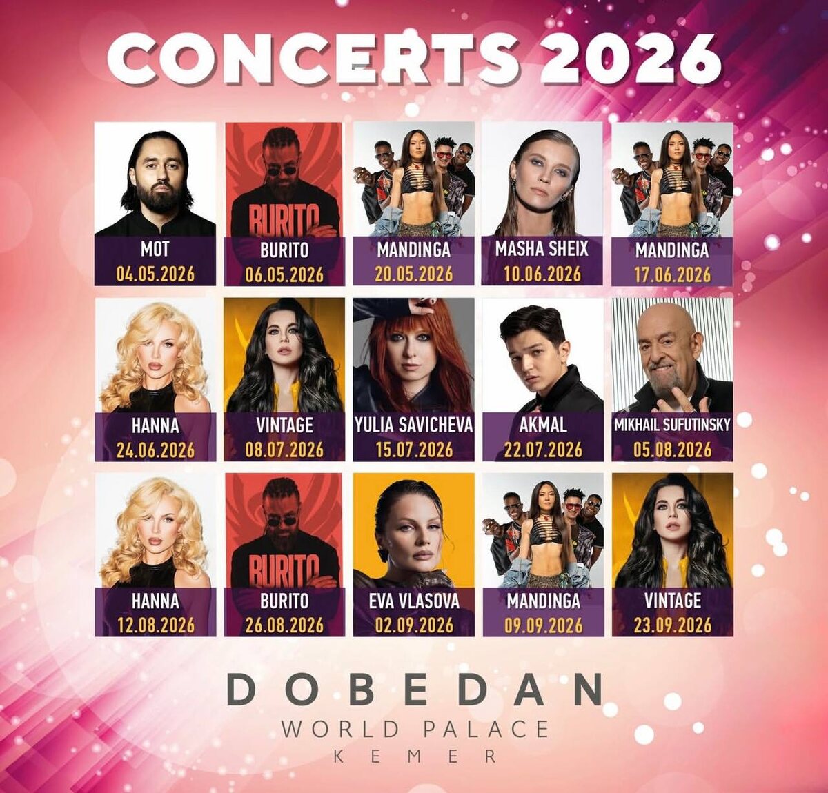 год вы встретили в хорошем настроении, в окружении радости, хорошей компании и искристых моментов. А теперь... у нас отличные новости, чтобы начать год правильно: официально анонсирована программа КОНЦЕРТА ЛЕТО 2026. Приготовьтесь к незабываемым ночам, яркой энергии и лету, которое стоит бронировать ✈️🧳🎫 Также концерты проходят в отеле Dobedan exclusive hotel Belek. Пишите даты и город вылета, отправлю стоимость