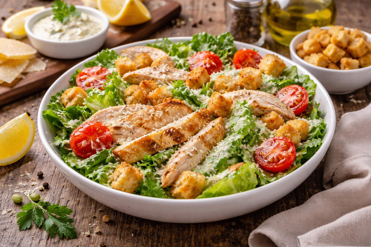 Салат «Цезарь» с курицей давно стал почти домашней классикой. Его готовят и на праздники, и просто к ужину — потому что он понятный, быстрый и нравится почти всем. Но есть один нюанс: каким бы идеальным ни было куриное филе и свежими — листья салата, весь характер блюда задаёт соус. Классический вариант с яйцом и оливковым маслом требует времени и сноровки. Поэтому предлагаем более простой, но очень удачный домашний вариант — на основе хорошего магазинного майонеза. Да-да, такой вполне можно найти. Добавляем к нему натуральный йогурт для лёгкости, анчоусы для глубины вкуса, дижонскую горчицу и каперсы — и в итоге получаем насыщенный, яркий соус, который делает салат по-настоящему «тем самым». Для салата: Для соуса: 1. Готовим курицу