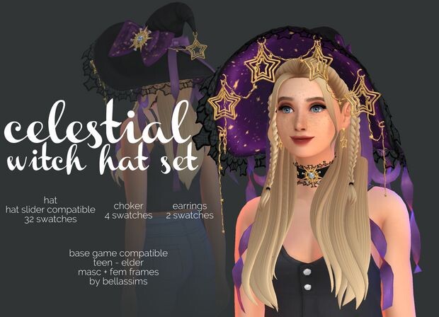 Скачать мод бесплатно ☽𖤓 Simblreen - Celestial Witch Set ☾𖤓 для The Sims 4 - #Аксессуары@simsfans_ru