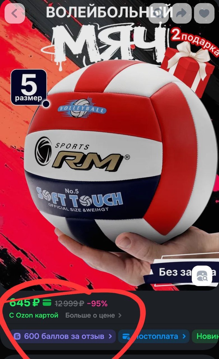 π¦RM ΠΡΡ Π²ΠΎΠ»Π΅ΠΉΠ±ΠΎΠ»ΡΠ½ΡΠΉ, 5 ΡΠ°Π·ΠΌΠ΅Ρ, ΠΊΡΠ°ΡΠ½ΡΠΉ - 645Ρ + 600 Π±Π°Π»Π»ΠΎΠ² Π·Π° ΠΎΡΠ·ΡΠ² = 45Ρ