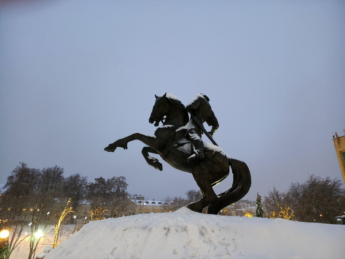 Однодневный автобусный тур в Рязань включал себя экскурсию по Кремлю и прогулку по Новогодней зоне, о чём я уже писала. Здесь покажу несколько объектов, попавшихся по пути. Знаменитые рязанские "грибы с глазами"- про них статей очень много, мы не занимались их поисками, повстречали всего два, пока шли от Рязанского кремля по Трубежной набережной к памятнику С.Есенина. Гриб- дозорный И гриб-художник, укутанный по случаю зимы шарфиком На набережной нашли стелу, посвящённую рязанцем-воинам войны 1812 года Вдоль набережной несколько "деревьев счастья" для молодожёнов. Поставили специально, чтобы замки вешали на них, а не на ограждение набережной. Получилось прикольно- прямо как будто фрукты созрели! Памятник Сергею Есенину, установленный в 1975 году к 80-летию со дня рождения поэта, работа скульптора А. Кибальникова. Есенин читает стихи, устремив взгляд вдаль, широко раскинув руки, как будто хочет обнять горячо любимую Родину. На момент нашего посещения был частично укрыт снегом, а на пал