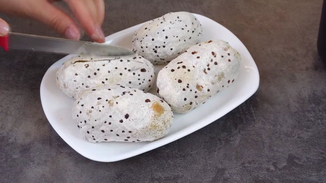 Совет: Для этого рецепта лучше выбирать картофель одного размера, чтобы он приготовился равномерно. Мука с солью создает плотный слой, который не дает кожуре лопнуть и образует приятную поверхность.