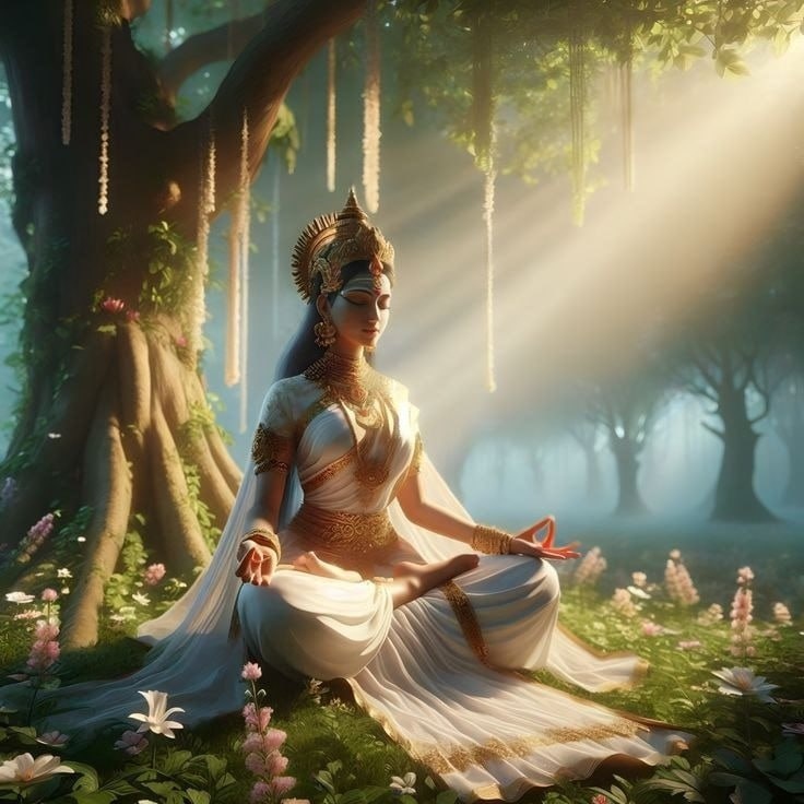 Нам достаточно своей практики, свой аскезы. Это ее Дар человечеству – обрести себя в свете божественной любви! В начале Наваратри берутся аскезы - отказ от чего-то или взятие на себя обязательств по исполнению чего-то (тут или гуру дает наставление, или сам человек определяет свою аскезу). Аскеза берется через ритуал - обычно это пуджа. … На солнце четыре костра зажигала И в зной среди них неподвижно сидела, С улыбкой сидела, нежнейшая в мире, И, не отрываясь, глядела на солнце. И, солнцем палимое неутомимым, Лицо хорошело, как царственный лотос, И разве что возле очей удлиненных Наметились еле заметные тени. … Огнем опаленная неугасимым, Палимая жаром костров разведенных, Впервые в году окропленная с неба, Дымилась она, как земля, истомившись. … Опавшей листвою питаться - заслуга Для тех, кто себя беспощадно смиряет, Но даже листвы не вкушала царевна: "Безлистной" подвижницу мудрые звали. Отшельников неколебимых и строгих, Подвижников неуязвимых и стойких Она превзошла, уязвимая т