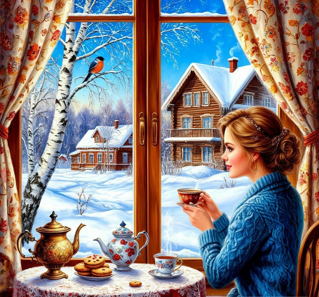 Зима в Сибири рисовала за окном не пастелью, а густыми, смелыми мазками. Снег лежал плотный, искрящийся миллиардами алмазных блёсток, а ветви сосны гнулись под бирюзовыми шапками. В центре этой суровой красоты бушевала жизнь моей кормушки. Юркие воробьи-полевики сыпались, как град, рассыпая янтарную шелуху. Их сменили щеглы в ярко-желтых жилетках. Я наблюдала, укутавшись в плед, и вдруг поймала себя на мысли, которая пришла так же ясно, как хруст ветки на морозе. Смотрю на важного снегиря в малиновом бархате и думаю: «Снегурка», «Снегириха». Легко и логично. А потом взгляд поймал другую птицу. Она материализовалась из хвои бесшумно. Синица-сибирячка. Её наряд был ярок и точен: лимонно-жёлтое брюшко с чёрной бархатной полосой, шапочка с синим отливом и ослепительно-белые щёки. Она долбила семечко — звонко, как крошечный дровосек. «А как зовут её мужа?» — пронеслось в голове. И тут ум, подхваченный морозной ясностью, начал лихорадочно перебирать слова. Снегирь — снегурка. Клёст — клест