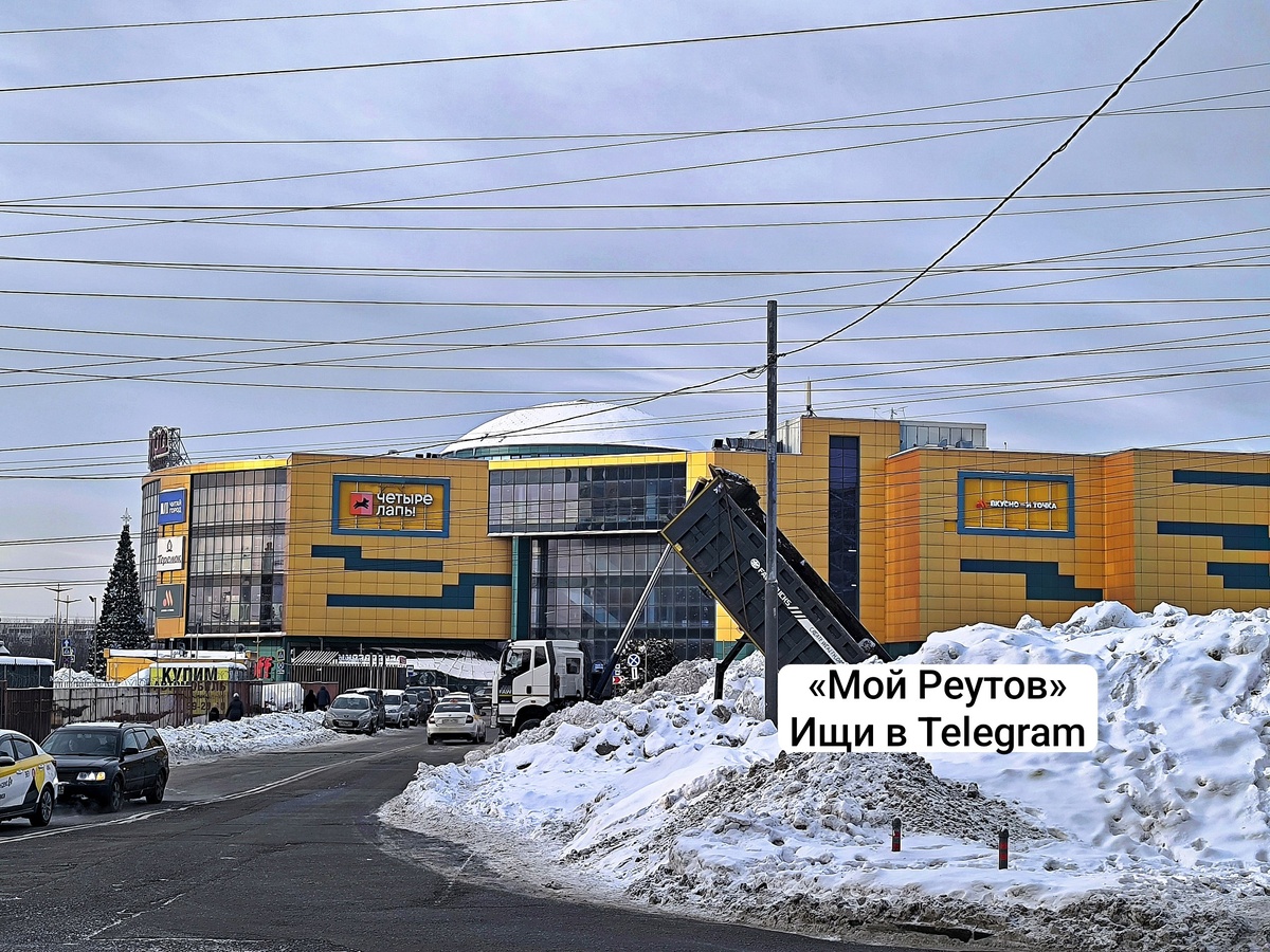 ⁉️Собранный с улиц Реутова снег в этом году складируется на парковке у ТЦ "Шоколад". Интересно, таять он тоже будет здесь?