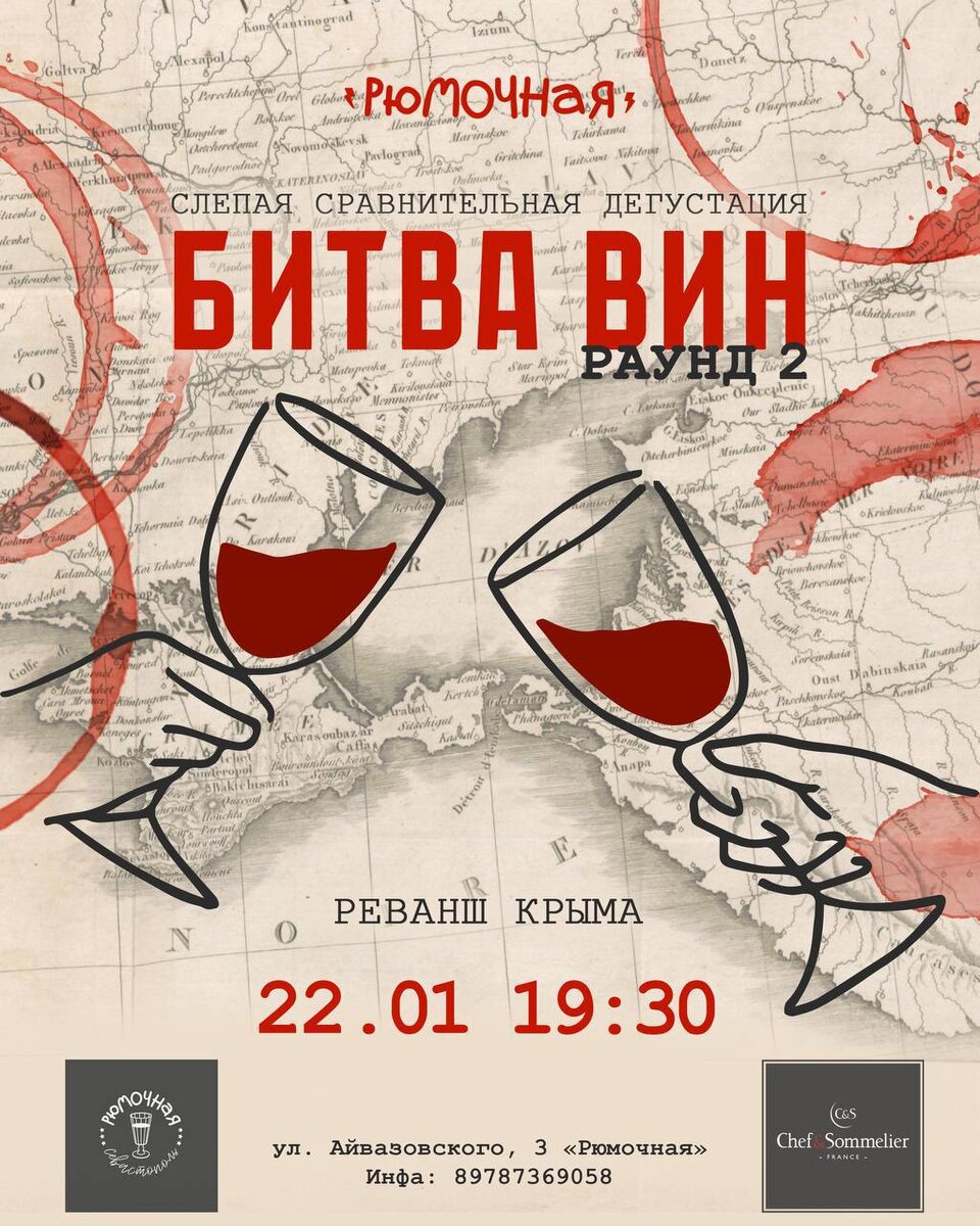 » Реванш Крыма: слепая сравнительная дегустация вин Крыма и вин из других винодельческих регионов России. Будем угадывать вслепую в каком из двух бокалов крымское вино, а где материковое, и какие же из сортов припас для вас наш сомелье. А сравнить будет с чем – выбранные материковые вина не так то легко встретить у нас в Севастополе. На кону 3 пары вин: игристое и 2 красных (зима же) и аперитив для подготовки ваших вкусовых сосочков, и все это в сопровождении легких закусок от нашего Шефа. 👉 Когда? 22 января в 19:30 👉 Где? Ул. Айвазовского,3 , Рюмочная 👉 Стоимость 2200₽ (три пары вин в сопровождении легких закусок) 👉 Количество мест ограничено! 👉 Бронь по телефону: +7(978)736-90-58 или @lenadariy ✨Давай сходим, Севастополь | Читайте и смотрите нас в МАХ