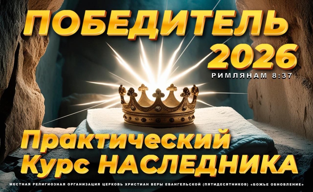 Как вы думаете, верите ли вы в то, что вы — победители и наследники Бога? 🤔 Не просто на уровне учения, а в реальной жизни: когда вы смотрите на свою жизнь и не видите того, что Бог обещал в Библии. 💯 👀 Или, возможно, внутри вас живёт ощущение, что вы всё ещё грешник, который старается, просящий у Божьих ворот или жертва обстоятельств? 🙂 Если это про вас, знайте — вы не одиноки. Многие люди испытывают подобные чувства, осознавая одно, но переживая совершенно другое. 🥇 С 25 января по 12 апреля 2026 года я с радостью представляю вам наш новый 12-недельный практический курс «Победитель 2026». 👑 ❗️Это не просто серия лекций, а структурированная программа. Мы создадим дорожную карту и разработаем пошаговый план, 🔔 который поможет вам преодолеть преграды и начать жить той полноценной жизнью, за которую 👍 Христос уже заплатил на кресте. 🔝 Мы пройдём путь от осознания своего статуса → к обновлению ума → к практике в отношениях, финансах, здоровье → и к великой Пасхе как к нашему