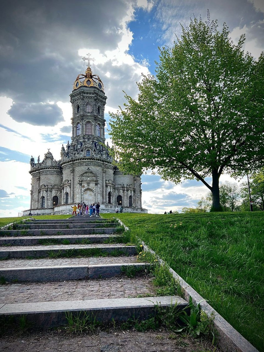 ? π΅Π₯ΡΠ°ΠΌ ΠΠ½Π°ΠΌΠ΅Π½ΠΈΡ ΠΡΠ΅ΡΠ²ΡΡΠΎΠΉ ΠΠΎΠ³ΠΎΡΠΎΠ΄ΠΈΡΡ β ΡΠ΅ΡΠΊΠΎΠ²Ρ Π² ΠΠΎΠ΄ΠΌΠΎΡΠΊΠΎΠ²ΡΠ΅, Π³Π΄Π΅ Π²ΠΌΠ΅ΡΡΠΎ ΡΡΠ°Π΄ΠΈΡΠΈΠΎΠ½Π½ΠΎΠ³ΠΎ ΠΊΡΠΏΠΎΠ»Π° Π·Π΄Π°Π½ΠΈΠ΅ Π²Π΅Π½ΡΠ°Π΅Ρ Π°ΠΆΡΡΠ½Π°Ρ Π·ΠΎΠ»ΠΎΡΡΠ½Π°Ρ ΠΊΠΎΡΠΎΠ½Π°. Π₯ΡΠ°ΠΌ Π½Π°Ρ