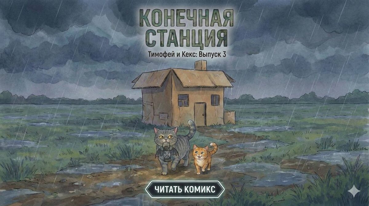 Домашние коты попали в аварию и очнулись в глухом лесу. Но самое страшное это не лес, а тот, кто за ними следит. Читайте третью часть нашего авторского комикса "Конечная станция".
