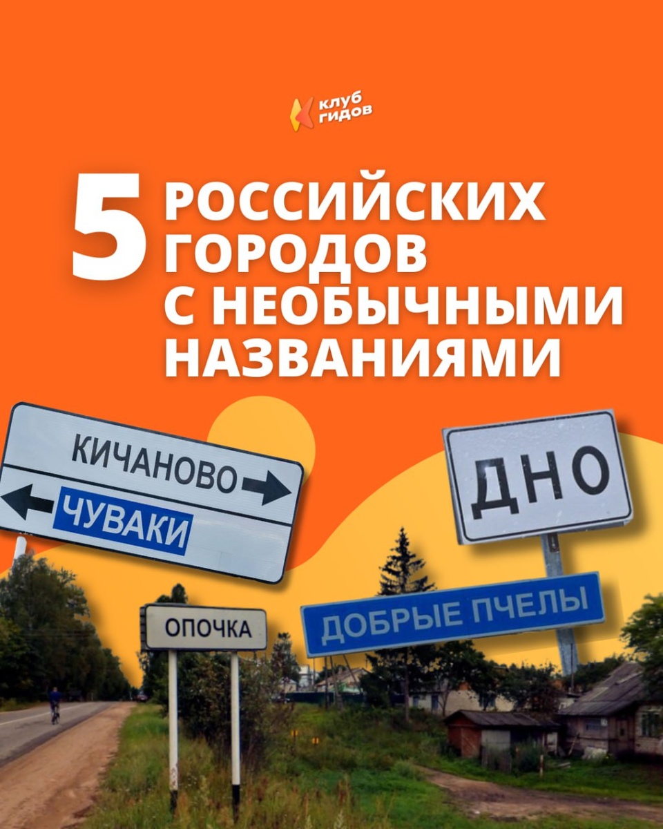 ⬅️ В России сотни уютных мест, но эти пять явно выделились. Рассказываем, что стоит за странными названиями на дорожных указателях: 1️⃣Дно (Псковская область) Город с населением в 8 000 человек. До революции это было богатое село, но история происхождения названия до сих пор остается загадкой. Одно знаем точно: если вы здесь оказались, то падать уже некуда — только наслаждаться видами. 2️⃣Чуваки (Пермский край) Официальный обладатель титула «Самое смешное название в стране». Местные жители гордятся своим статусом и с юмором отвечают на вопрос: «Вы откуда?» — «Из Чуваков!» 3️⃣ Добрые пчелы (Рязанская область) Никакой агрессии, только мед. Название пошло от монастырских пасек, которые располагались здесь в древности. 4️⃣ Берлин (Челябинская область) Зачем виза, если есть Челябинская область? Здесь казаки, вернувшиеся после заграничных походов 1812-1814 годов, основали свои поселения в честь взятых городов. Кстати, рядом есть и Париж с собственной «Эйфелевой» вышкой связи. 5️⃣ Новый