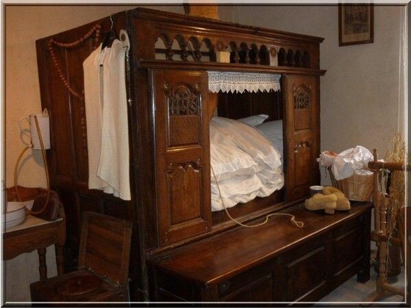 Ключевой принцип: экономия пространства и защита от сквозняков. В домах с общими залами и тонкими стенами личное пространство было роскошью — и кровать становилась одновременно спальней, кабинетом и сейфом.
