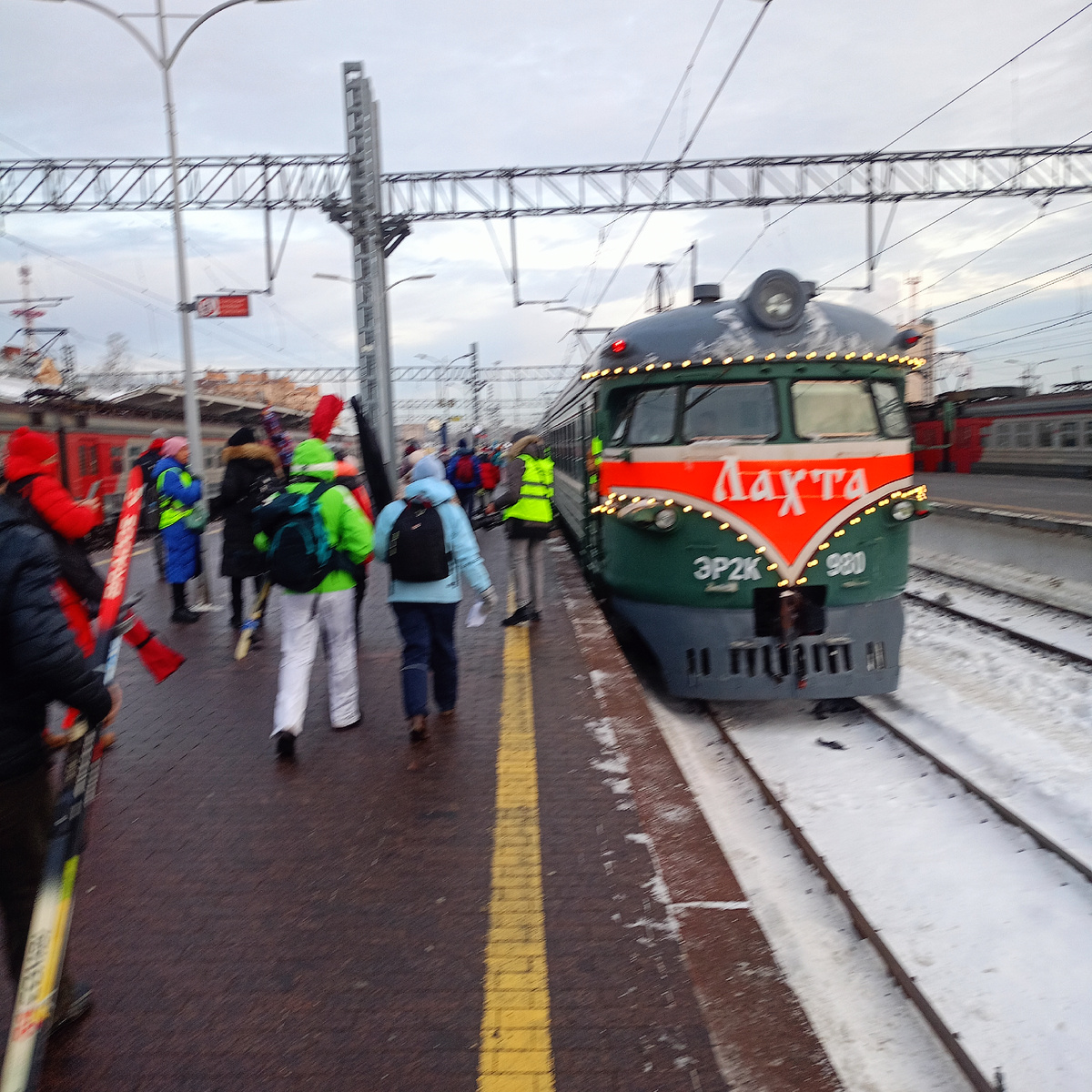 Ещё в метро встречались люди с лыжами, а на вокзале нас собралась уже целая толпа.