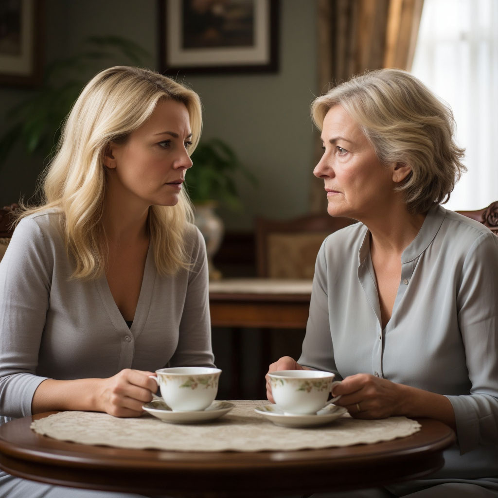 За окном моросил дождь, размывая очертания деревьев в саду. Этот серый, промозглый день словно подчёркивал напряжение, повисшее между двумя женщинами. Елена невольно сжала чашку крепче — тепло керамики едва пробивалось сквозь оцепенение.