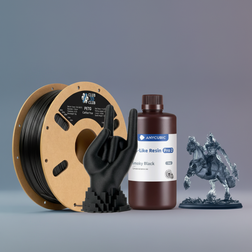 - Оригинальные материалы: филаменты Anycubic, Eryone и собственной торговой марки CLUB3D.PRO; фотополимерные смолы Anycubic.