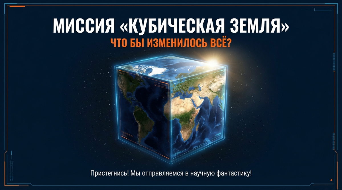 Внимание, внимание, все на старт! Сегодня у нас не обычный урок, а самая настоящая космическая миссия. Мы будем фантазировать, как безумные учёные, и зададим один очень странный вопрос: А что, если бы наша планета была... не круглой, а кубиком? Как игральный кубик, только размером с целый мир! Готовы к путешествию в невозможное? Тогда погнали!
