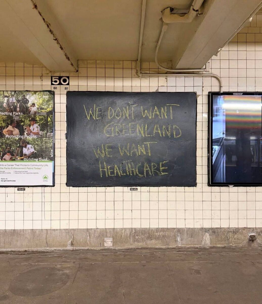 На стене в Нью-Йорке появилось граффити: «We don't want Greenland, we want healthcare». Жители напоминают, что вместо геополитических амбиций им нужна реформа медицины. Уличное искусство говорит громче официальных заявлений. 🚲 Подпишись на Телега Online