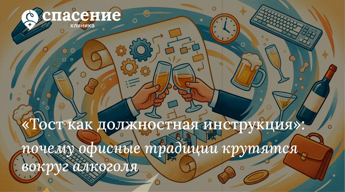 Служебные чаты шлют «сохраните дату», столы накрыты, в центре — бутылки «для настроения». «За проект», «за команду», «за новых» — сценарий отработан, как регламент. А утром тот же коллектив обсуждает, почему растут срывы, больничные, мелкие травмы и ошибки. Корпоративная культура десятилетиями строится вокруг выпивки — и именно она делает зависимость нормой, а отказ — исключением.