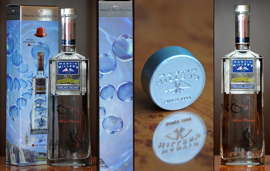 Продолжаем знакомиться с джинами. Обзор от моего друга El_gorra (текст и фото автора, ссылка на оригинал в конце обзора). Martin Miller`s Gin. Хорошо известный базовый джин чудесатого происхождения. Собственно производство – Англия, вода – из Исландии (да не просто из Исландии, а с исландских ледников), апельсины (как составная часть дополнительной ботаники) – из испанской Мурсии. Оквадраченная вытянутая бутылка с симпатичным изображением географии производства (Испания опущена), с флагами Англии и Исландии (Испания снова обижена) и внушительным набором медалек разнообразных спирит-конкурсов на небольшой тёмно-синей этикетке. Зато испанская фирма (видимо, апельсиновая) указана как бы вторым производителем непосредственно после Martin Miller`s Gin Ltd (правда, это уже – на коробке). Сама по себе коробка достойна отдельного упоминания: картонная, компактная, голубая в основе, со