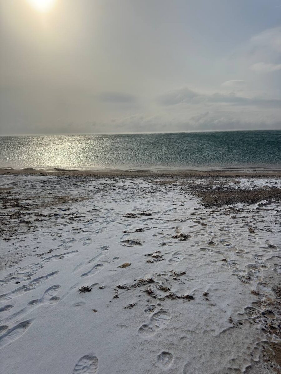 🌊 Сегодня заехали на море. Первый вдох — как ледяной глоток. Воздух колючий, солёный, влажный, будто море выдохнуло всю зиму сразу. Ветер не дует — режет. Проходит сквозь куртку, забирается в шею и рукава, щёки и руки немеют почти сразу. Море не шумит, оно парит. Вода теплее воздуха, над ней лёгкий туман. Да, прямо как чашка горячего чая, только огромное и живое. Берег покрылся льдом: волны вмерзли, застыли в движении. В прозрачном льду — камни и медузы. Холод сейчас — не просто погода. Это состояние❄️ Мысли становятся ясными и тихими. Хочется молчать, стоять и чувствовать, как этот морозный ветер проходит сквозь тебя. А потом быстро в машину и домой- греться, греться… 📹 Каламитский залив, Евпатория 🌊 ❤️