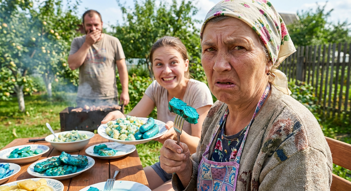 Соседка посмотрела на «червяков» в салате, которые дрожали на ветру, на синее мясо, потом на «добрые» лица соседей.