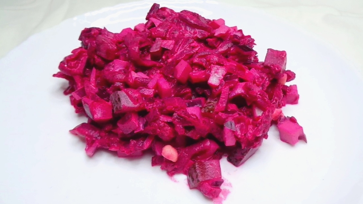 Салат со свеклой – это не просто закуска, это симфония вкусов и текстур, где каждый ингредиент играет свою неповторимую партию. Такой салат готовится очень просто, и не займет много времени на приготовление. =================== Маринованные огурцы - 3 шт.(Средние) Красный лук - 1 шт. Яйцо - 3 шт. Свекла - 2-3 шт. (не крупные) Майонез - по вкусу. Соль - по вкусу. ======================================== 1. Маринованные огурцы и красный лук, нарезать мелким кубиком и переложить в салатник. 2. Яйцо отварить до готовности, остудить, очистить, нарезать мелким кубиком добавить в салатник. 3. Свеклу отварить или запечь в духовке до готовности, остудить, очистить, натереть на крупной тёрке к остальным ингредиентам. 4. Всё хорошо перемешать, добавить соль и майонез по вкусу и еще раз всё перемешать. 5. Салат готов подаём к столу. Вот такой простой в приготовлении, вкусный, полезный салат со свеклой получается. Самое долгое в нём это отварить или запечь свеклу. Салат простой но в то же время в