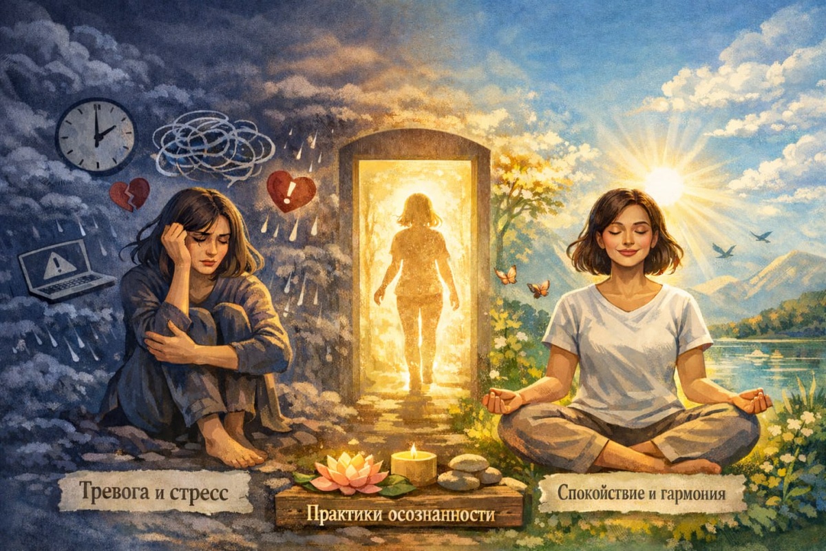 Гузель не считала себя тревожным человеком, просто всё принимала близко к сердцу, пронося всё через себя. Критика со стороны приводила к тому, что потом полдня ком в горле стоит. А если что-то идёт не так на работе или в семье, то она прокручивает эту ситуацию в голове снова и снова. Вроде уже вечер, а внутри всё ещё идёт внутренний диалог: «Зачем я это сказала… Надо было иначе… А если я ошиблась?..» Она не истерила и не паниковала. Просто постоянно жила с внутренним напряжением, о котором никто, кроме неё, не знал. Как она не пыталась в мыслях убедить себя реагировать по-другому, говоря себе: «Не драматизируй», «Не принимай всё так близко», но легче не становилось. В какой-то момент Гузель поймала себя на мысли, что устала так жить. Устала не от самой жизни, а от реакций на неё. И в этот момент она вспомнила, что её подруга уже несколько раз говорила про практики осознанности, которые ей помогают. «Ну ладно, попробую» - сказала сама себе Гузель - «хуже уже точно не будет. Просветлённо
