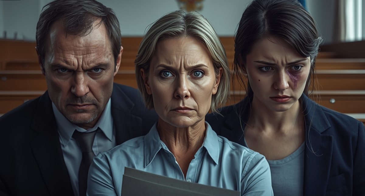 — Ваша честь, — голос Лиды дрожал, но звучал решительно. — Я прошу вызвать полицию. Прямо сейчас. Мой муж избил меня сегодня утром, когда я отказалась лжесвидетельствовать. И угрожал убийством, если я открою рот.