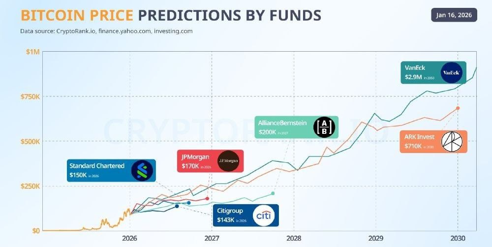 Cryptorank: прогнозы по курсу BTC крупными инвест-домами