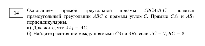 Здравствуйте, дорогие подписчики и гости канала Предлагаю вашему вниманию разбор 14 задачи из пробника Тюмени Первый пункт легко доказывается с помощью векторов, возьмем в качестве начало координат точку С Сделаем чертеж Как известно, скалярное произведение перпендикулярных векторов равно 0 б) второй пункт я делала с помощью метода объёмов, для этого нужно провести плоскость через одну из прямых и параллельно второй прямой. После чего рассмотреть одну и ту же пирамиду и найти объёмы разными способами. Так как пирамида одна и та же, то Замечание: можно построить перпендикулярную плоскость для первой прямой и в ней построить перпендикуляр для второй и найти его длину. Этот способ будет покороче, чем представленный. Спасибо за внимание, до новых встреч Также приглашаю учителей и репетиторов в группу Готовых материалов, где вы найдете много полезного материала, как платного, так и бесплатного материала Буду рада вашим комментариям, лайкам и подписке на канал