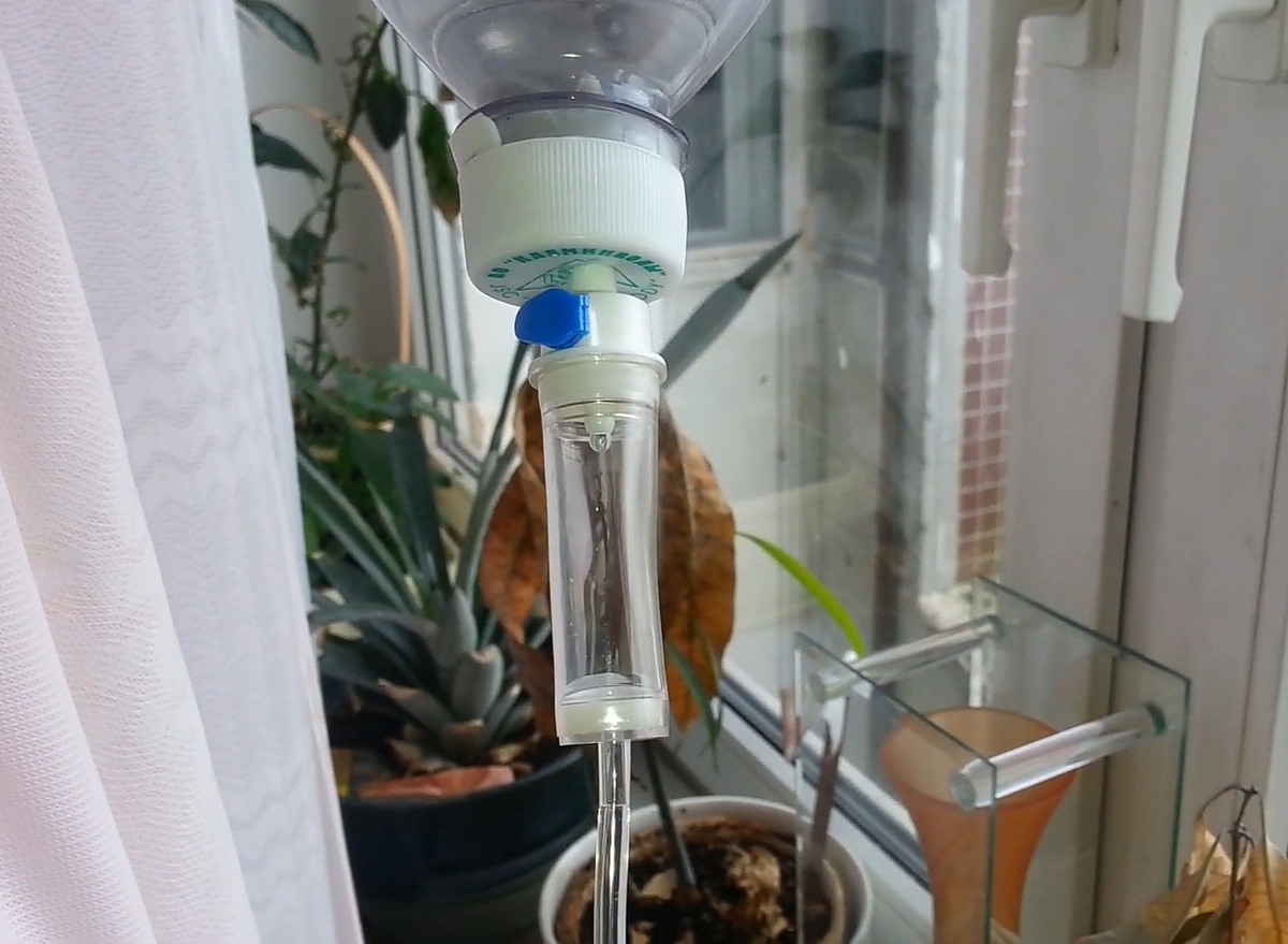 💡 Вариант без катетера: просто проделать маленькие отверстия в боковой части бутылки или в крышке — тогда вода будет капать сама.