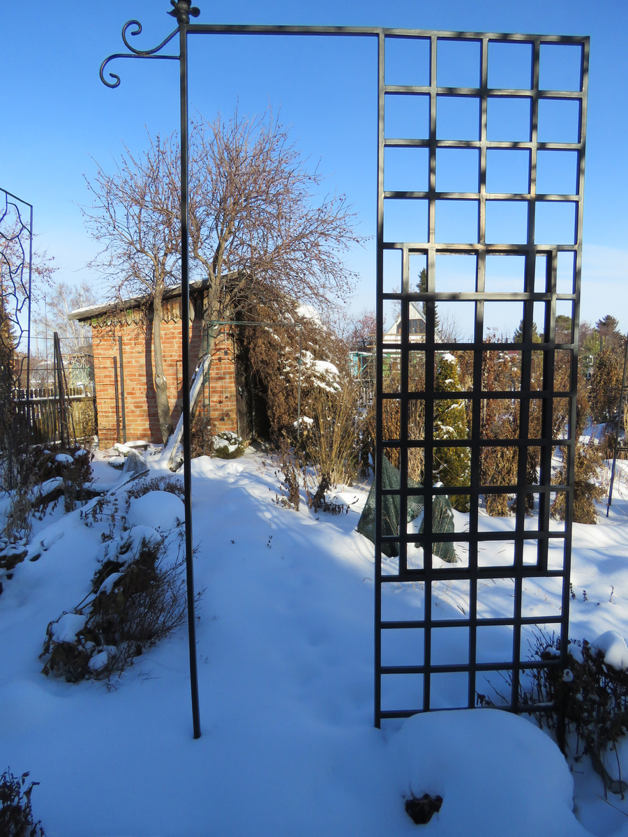 ну, не вороне....а Оксанке. И не сыр, а пару хороших зеркал одного размера. И не бог, а друг (с доставкой до сада). На дерево я с теми зеркалами, конечно, не полезла, а вот с их размерами я пошла по пути проторенному...до стольного граду Парижу. К кузнецу, вестимо. За аркой. И не абы какой, а - зеркальной. И плоской. И с довеском в виде фонаря и птички... Арки я люблю. И считаю, что любое сооружение, перекрывающее дорожку, по которому ползет лиана сама или под чутким руководством садовника - то арка. Арка? Арка. Дорожку перекрывает. Однозначно. Лиана по ней ползет? Конечно. Клематис бурый осваивает "ногу". А зеркала со стороны, задуманной, как МАФ (сиречь малая архитектурная форма) добавляют остроты ощущений. Я в них себя порой пугаюсь. Мелькаю ненароком.. Птицы мои к зеркалам привычные. Они их не интересуют. Не вызывают, так сказать, желания уйти в зазеркалье. В том зазеркалье отражается многое, под разными углами. И с разных сторон. Зеркал то два было, помним. И оба этих зеркала ле