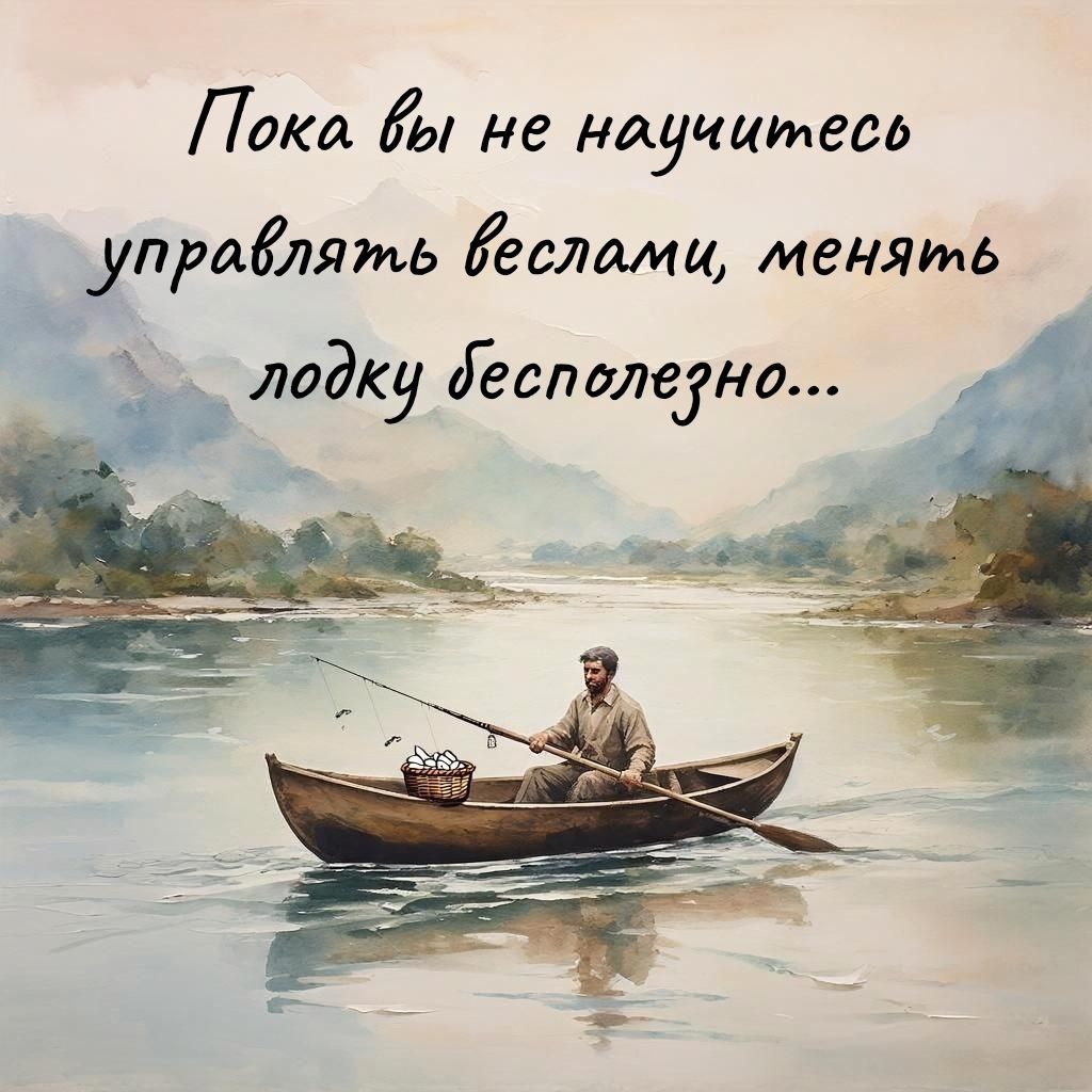 Внимание путешественника привлекли необычные надписи на веслах: на одном было начертано "Думай", а на другом — "Делай". — Что за странные весла у тебя? — с любопытством спросил путник. Лодочник, улыбнувшись, ответил: — Это не просто весла, это напоминание. Смотри, — и он начал грести только тем веслом, что с надписью "Думай". Лодка закружилась на месте, словно в водовороте. — Так бывает, когда я только думаю, — пояснил лодочник. — Размышляю, строю планы, но ничего не делаю. И в итоге остаюсь на месте, как эта лодка. Затем он сменил весло на то, что с надписью "Делай", и лодка закружилась в другую сторону. — А это, — продолжил он, — когда я бросаюсь в другую крайность. Действую без раздумий, без плана, без подготовки. Трачу силы и время, но в итоге снова кружусь на месте. — Вот поэтому, — заключил лодочник, — я и сделал эти надписи. Чтобы помнить: каждый взмах "Думай" должен сопровождаться взмахом "Делай". Только так можно двигаться вперед и достичь цели.