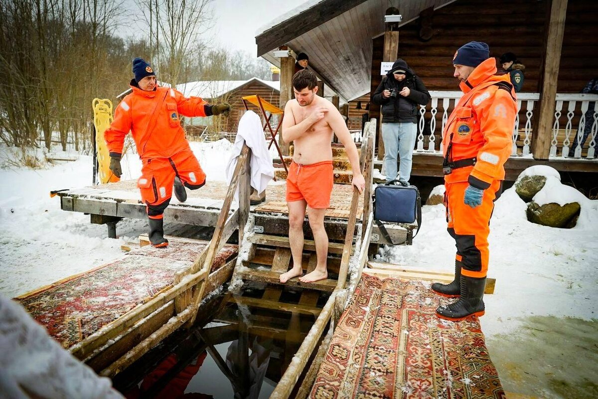 Фото: как проходят крещенские купания в пруду у храма страстотерпца царевича Алексия в Петергофе