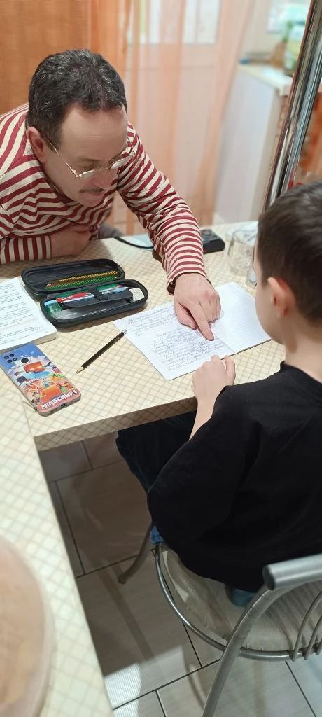 Дед с внуком учат уроки