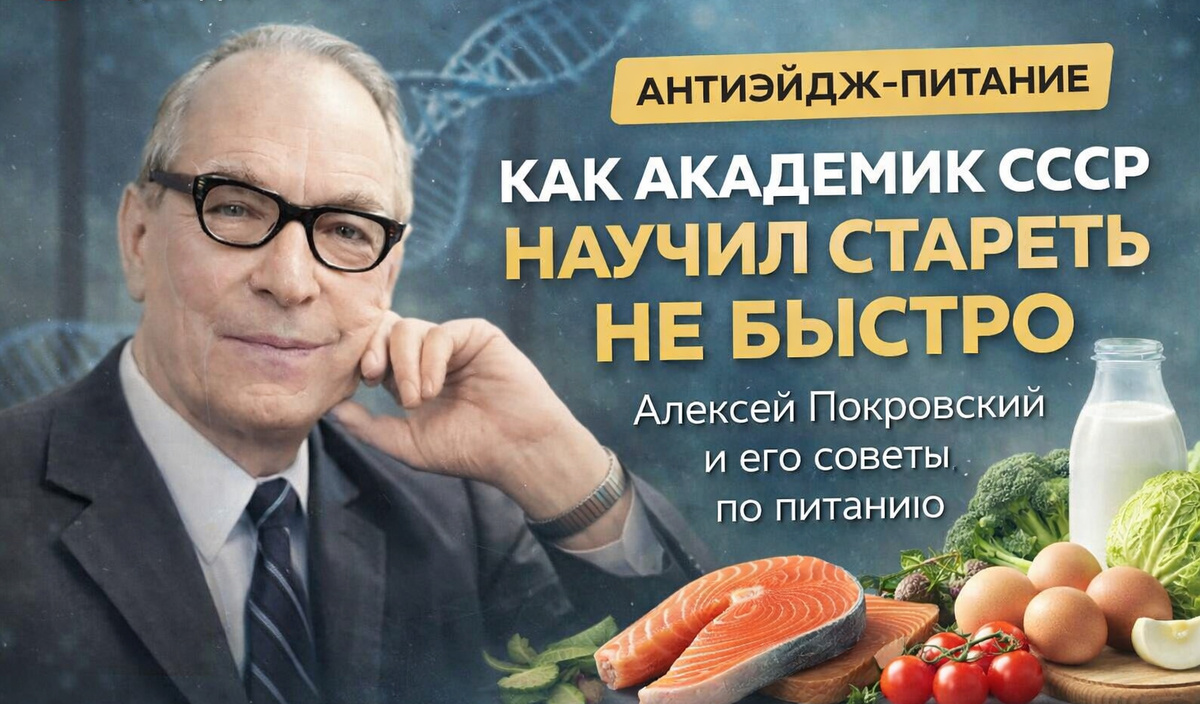 Я была уверена, что старость — это море морщин, потеря энергии и бесконечные таблетки. Пока не наткнулась на мысли человека, который вообще разрушил эту картинку. Его звали Алексей Покровский. И если бы соц. сети существовали в его время, он бы точно стал звездой антиэйджинга. Только не с сыворотками и аппаратами, а с тем, что мы жуем каждый день.