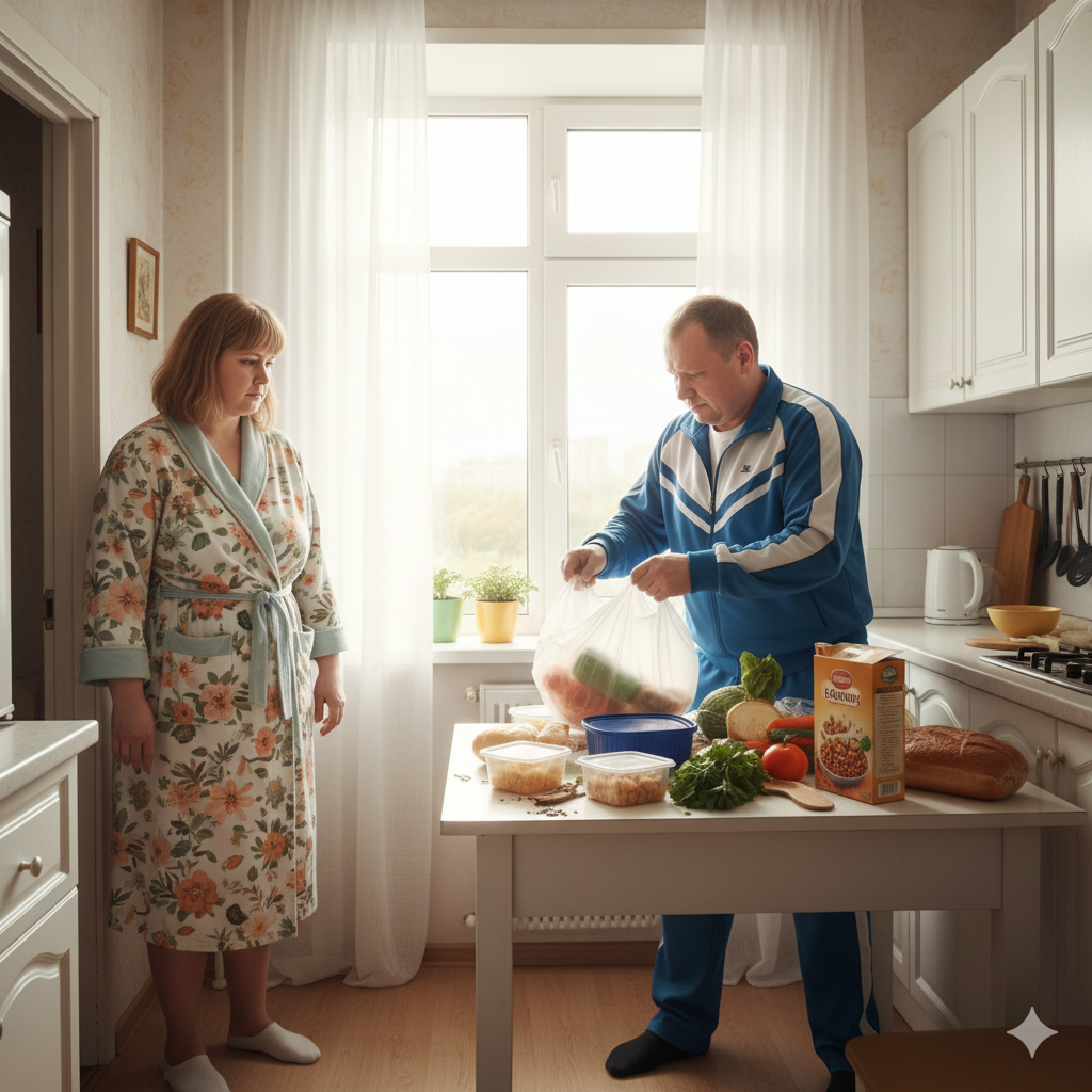 Светлана проснулась от грохота на кухне. Посмотрела на телефон — семь утра, воскресенье. Накинула халат и вышла из спальни.
