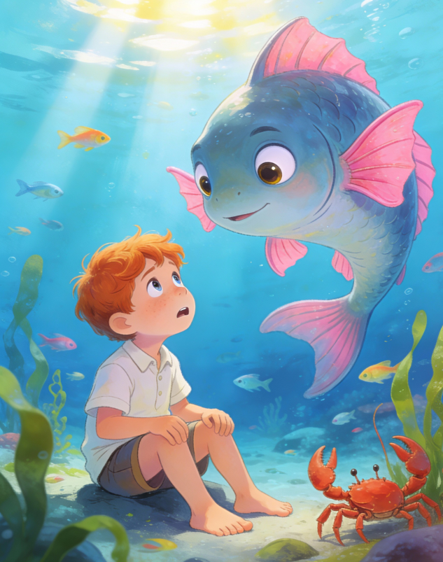 Рассказ «Случай с Евсейкой» Максима Горького: мальчик засыпает на рыбалке, «попадает» на дно моря, знакомится с морскими обитателями и благодаря находчивости возвращается наверх. Мальчик Евсейка в жаркий день рыбачит на берегу моря, засыпает с удочкой и во сне падает в воду, достигая морского дна. На дне он видит множество чудесных существ и разговаривает с большой рыбой, которая вместе с другими морскими жителями дразнит его и расспрашивает. Евсейка не теряется, проявляет смекалку: уговаривает большую рыбу «поиграть» и поплыть наверх ловить мух, хватается за её жабры и так выбирается на поверхность, просыпаясь снова на камне у моря. Сказка «Случай с Евсейкой» в более развёрнутом пересказе: Маленький мальчик Евсейка в жаркий летний день сидит на камне у моря и удит рыбу, ему скучно и клонит в сон. От зноя он засыпает с удочкой в руках и во сне как будто падает в море, опускаясь всё ниже, пока не оказывается на самом дне. На дне он сидит на камне, не может оттолкнуться и всплыть, хо
