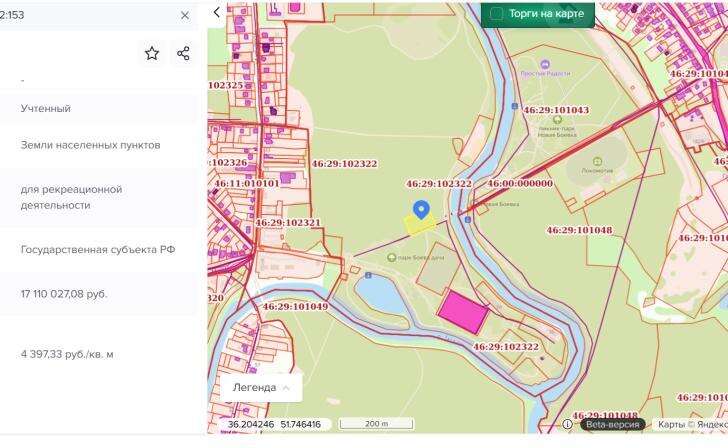 Это следует из данных публичной кадастровой карты Росреестра, на которую обратили внимание подписчики "Курских известий". Мы зашли на Портал о кадастре и недвижимости РФ и убедились, что земельный участок с кадастровым номером 46:29:102322:153 по адресу: Курск, ул. Тускарная имеет площадь 3891 кв. м. Он был поставлен на учет 28 августа прошлого года. Вид разрешённого использования — рекреационная деятельность. Как и у всего большого участка, из которого его выделили. Аналогичные данные по этому земельному участку содержатся и на других ресурсах с кадастровыми картами, например, здесь. Напомним, 17 января представители фирмы, которая собирается сделать на территории Боевой даче Парк альпак, встретились с неравнодушными курянами. Горожане говорили, что лучше бы для парка подыскать другое место, дабы не мешать бегунам и просто отдыхающим от «каменных джунглей». Представители фирмы заявляли об отсутствии вырубленных деревьев, о некапитальном характере будущих сооружений и т. д. Приехавший