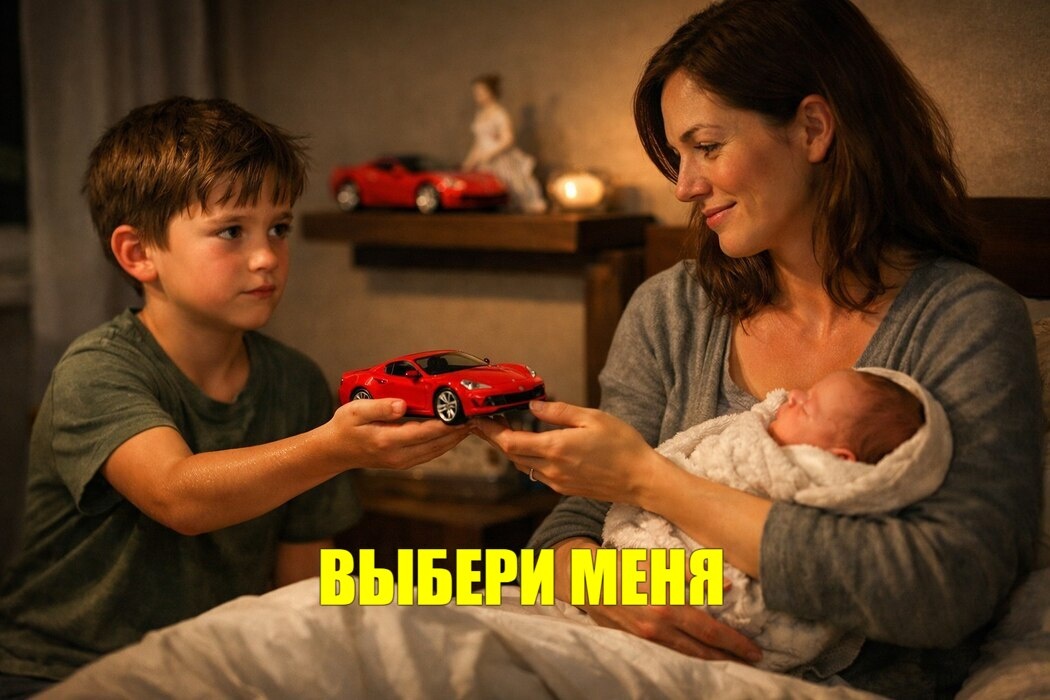 Максим стоял на пороге спальни, сжимая в потной ладони заветную красную «Феррари». Из комнаты доносилось тихое мурлыканье мамы, певшей колыбельную Катюшке. Эта «Катюшка» заняла его место на маминых коленях, в её смехе, во всём доме. На кухне папа нарезал салат. «Поздравляй!» — кивнул он на букет. Максим вошёл. Мама обернулась, уставшая, но улыбчивая. — С праздником! — прошептал он, протягивая машинку. Тот самый гоночный болид, который папа привёз из командировки. Его главное сокровище. Мама взяла её, растерянно глядя то на игрушку, то на его напряжённое лицо. — Макс… Это же твоя самая любимая. Ты уверен? Он молча кивнул, глотая комок в горле. «Возьми её. Выбери меня», — кричало внутри. Младшая сестрёнка копошилась в кроватке. Мама посмотрела на машинку, потом на его глаза, полные обиды. И всё поняла. Мгновение неловкой тишины повисло в комнате. — Спасибо, — тихо сказала она, и её голос дрогнул. — Это самый драгоценный подарок. Потому что он твой. Она не положила машинку на тумбочку. Он