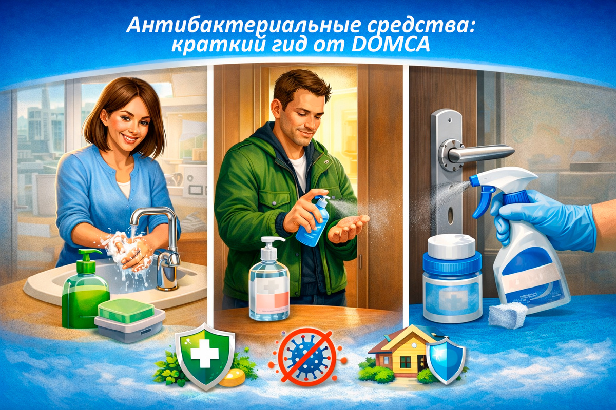 В чем разница: антибактериальное мыло, кожный антисептик и средство для поверхностей? Краткий гид от DOMCA