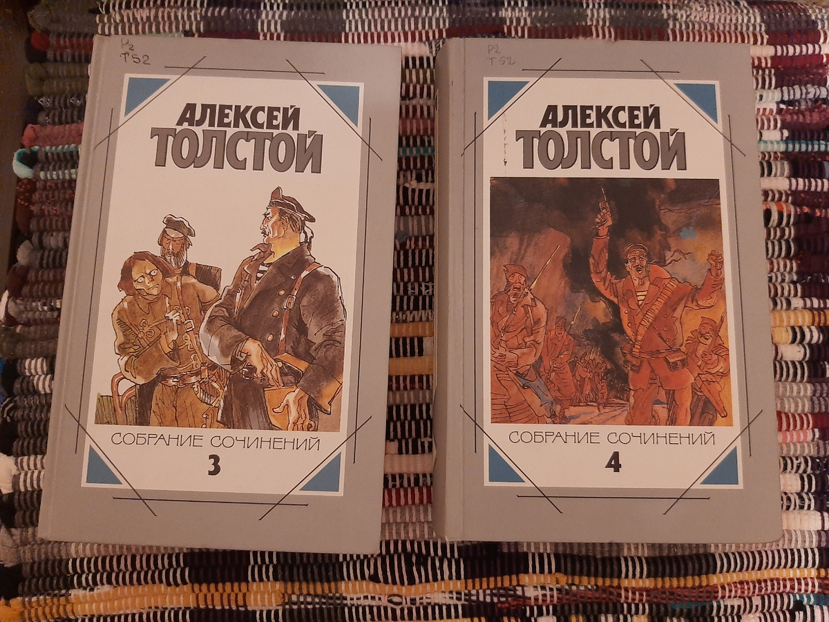 И я отправилась в городскую библиотеку. Книг А.Н. Толстого я на полках не нашла, как-то даже странно, все-таки классик советской литературы. Библиотекарь принесла мне "Хождение по мукам" из хранилища, но отдельного издания не нашлось. Поэтому домой я унесла два толстеньких тома, каждый в 700 страниц, из собрания сочинений, в которых были и другие произведения А.Толстого. Собрание сочинений издано в 1995 году.