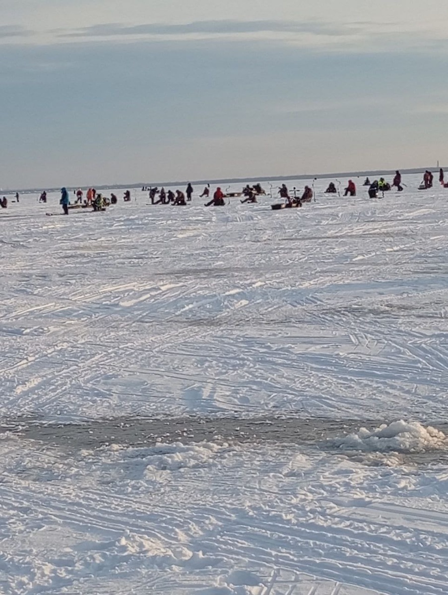 🚩 Ладожское озеро, южный берег, Креницы Маленько поклевало. Было два происшествия! С утра на снегоходе на скорости парнишка перевернулся, надеюсь не поломался, а под конец рыбалки у кого-то убежала мотособака, ловили её толпой, она даже на ходу человека сбила. Кое-как, но поймали, ох мужик и набегался за ней.